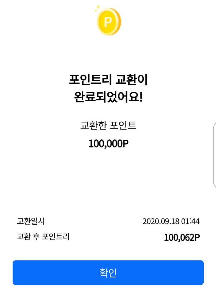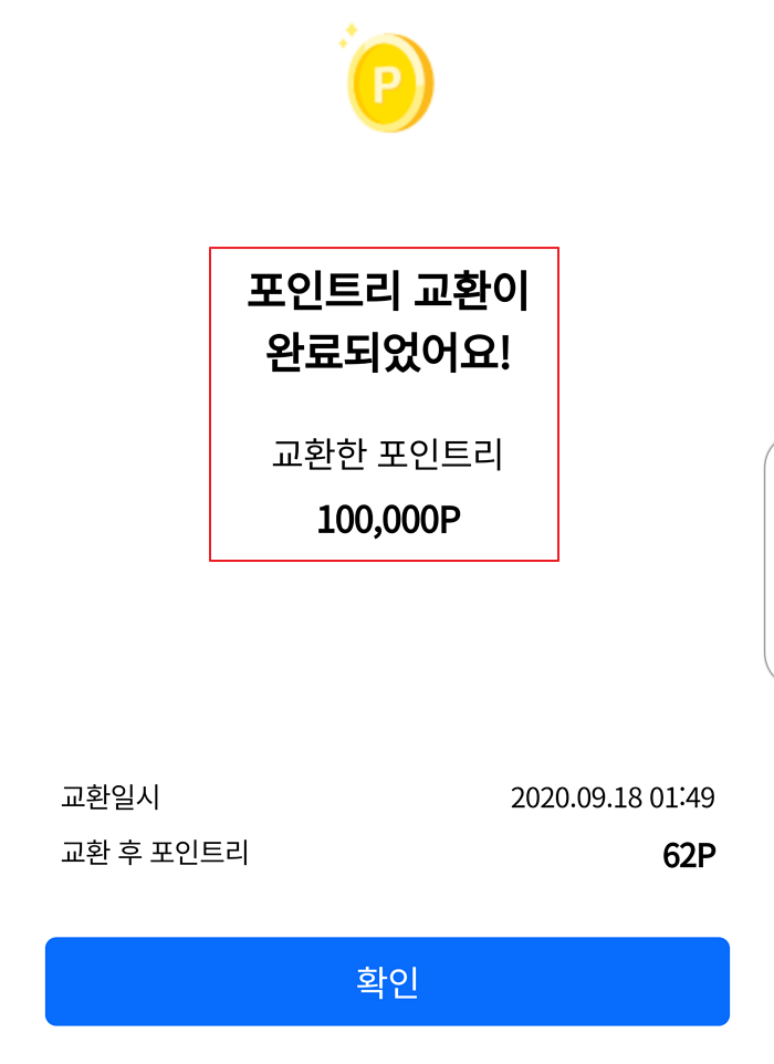 그대로 쭉 진행하면 포인트 교환에 성공하게 됩니다.