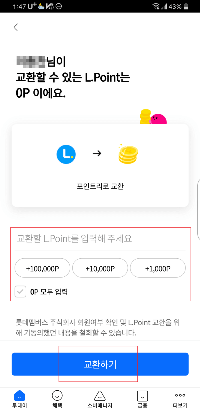2. 다시 L.Point로 전환, 마일리지 전환, ATM 전환 불가