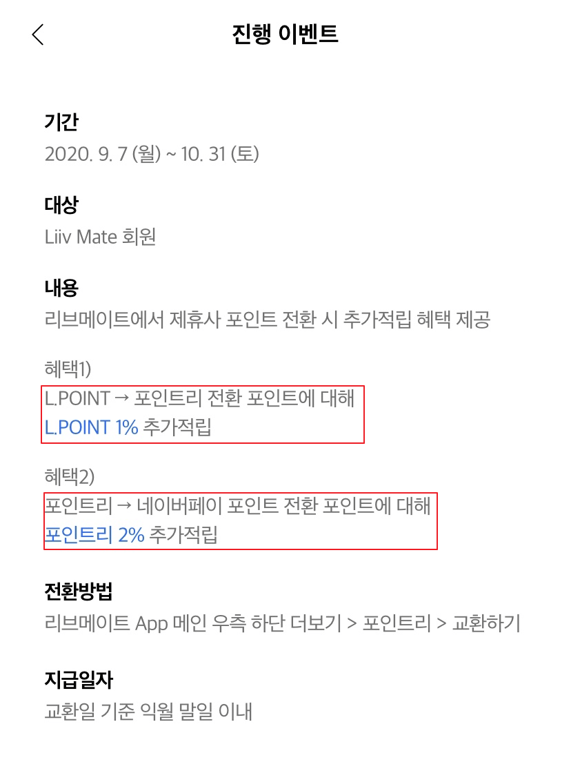 리브메이트(포인트리) -> 네이버페이 포인트 전환 시 리브메이트(포인트리) +2% 추가 적립