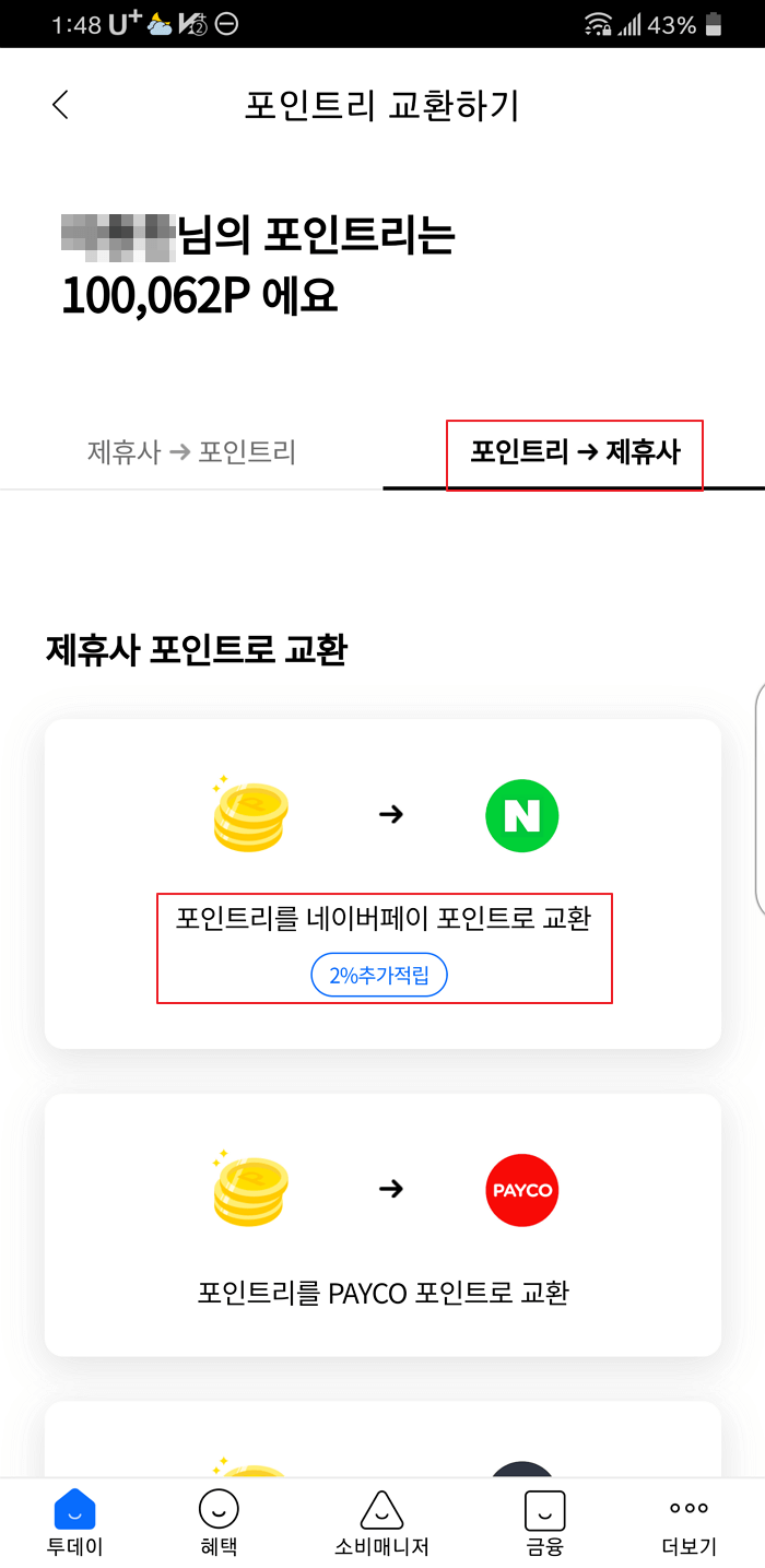 포인트를 전환하기 위해 포인트 전환 화면으로 이동합니다.