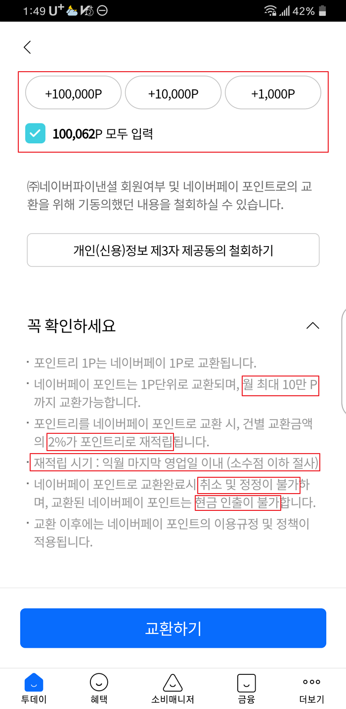 리브메이트에서 네이버페이 포인트로 전환시 +2%