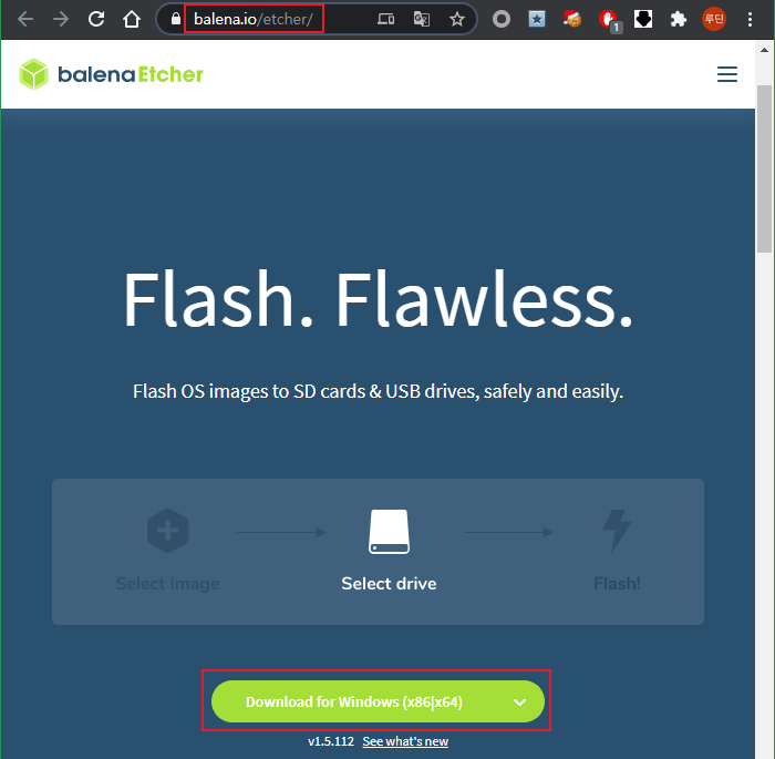 balenaEtcher Tool을 다운로드 합니다.