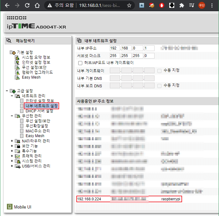 확인된 IP로 접속하면