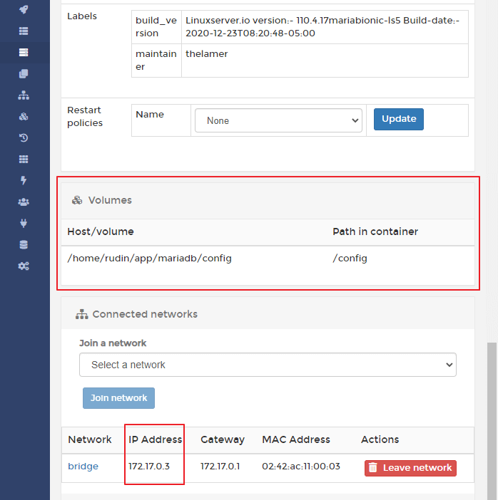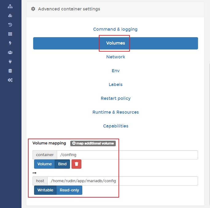 | -v /config | DB 및 DB 설정 등 관련 파일을 저장할 위치 |