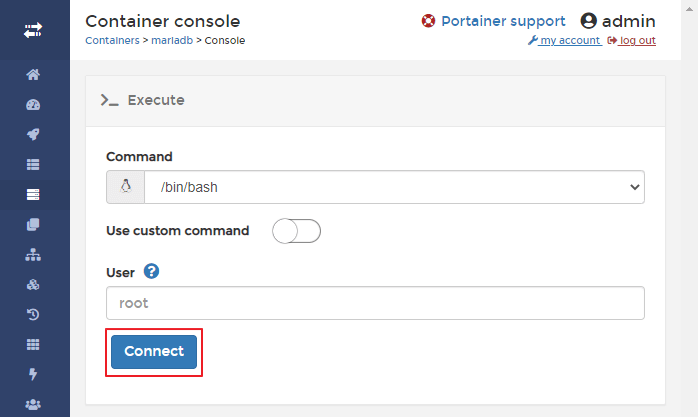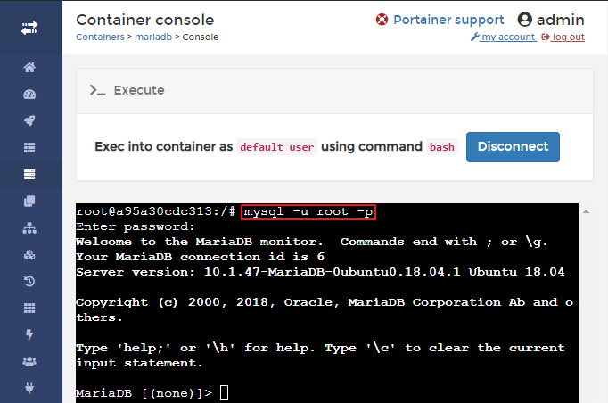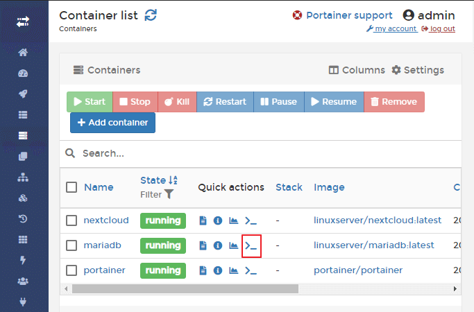 mariadb의 '>_' 버튼을