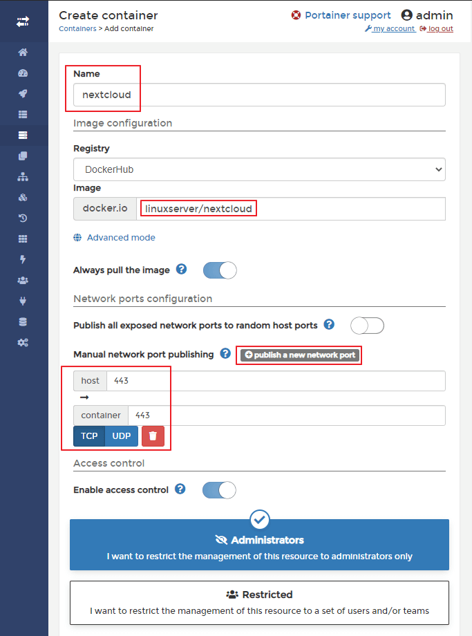 NextCloud 컨테이너 생성