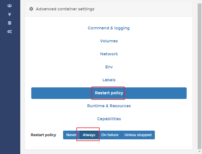Restart policy 설정이다.