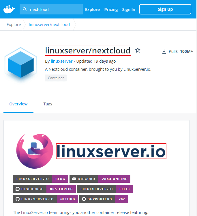 https://hub.docker.com/r/linuxserver/nextcloud