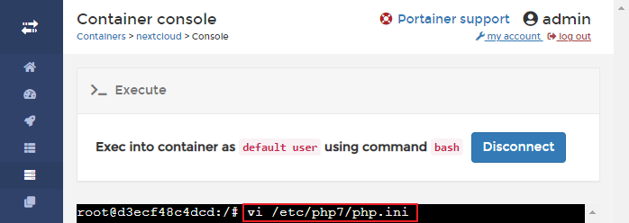 NextCloud의 콘솔로 접속한 후,