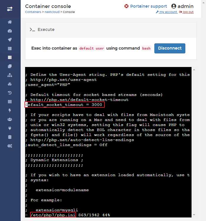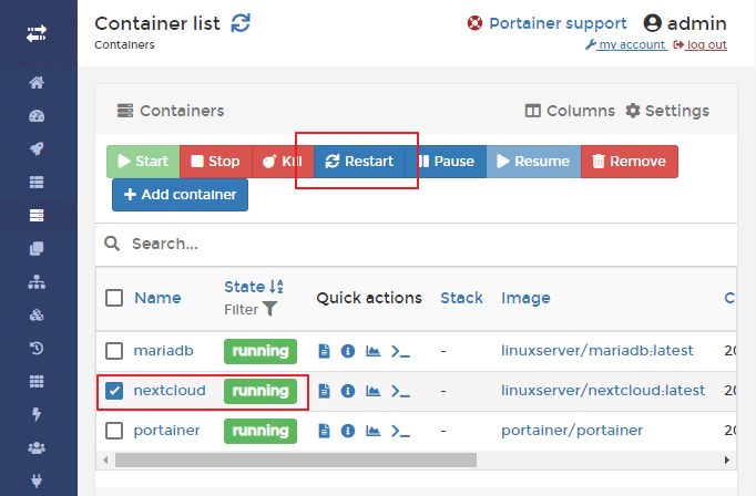 NextCloud Container를 재시작한다.