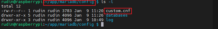 - vi /home/<사용자 계정>/app/mariadb/config/custom.cnf