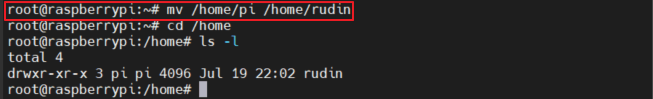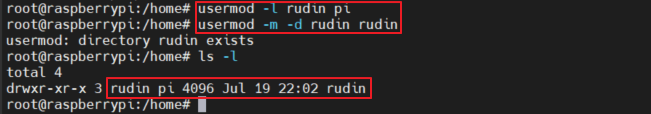 명령어를 통해 pi 계정의 이름을 변경합니다.