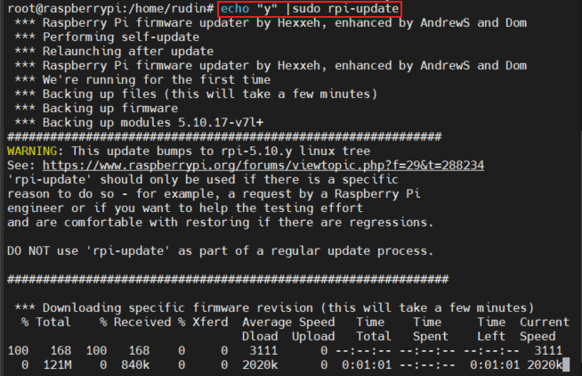 $ echo "y" | sudo rpi-update