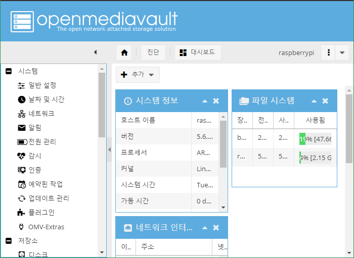 2021.07.20 - [NAS/Raspberry Pi] - [라즈베리파이4 NAS - 홈 스트리밍] 3. OMV 5 설정(IP, 호스트네임, 관리자 암호)