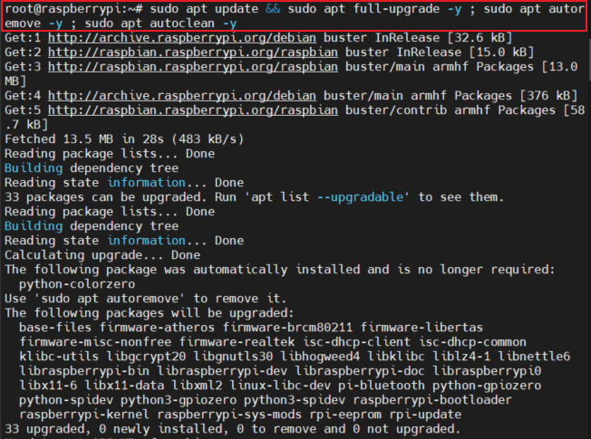 $ sudo apt update && sudo apt full-upgrade -y ; sudo apt autoremove -y ; sudo apt autoclean -y