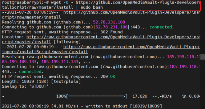 $ wget -O - https://github.com/OpenMediaVault-Plugin-Developers/installScript/raw/master/install | sudo bash