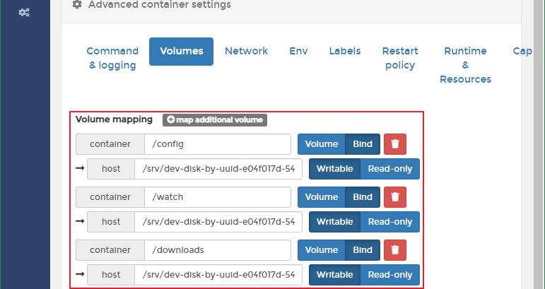 Volumes > + map additional volume >