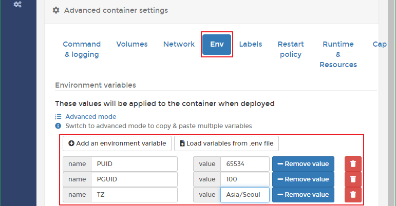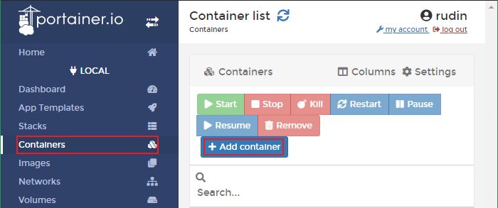 Portainer > Containers > Add container