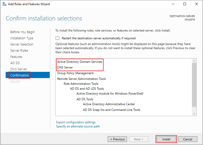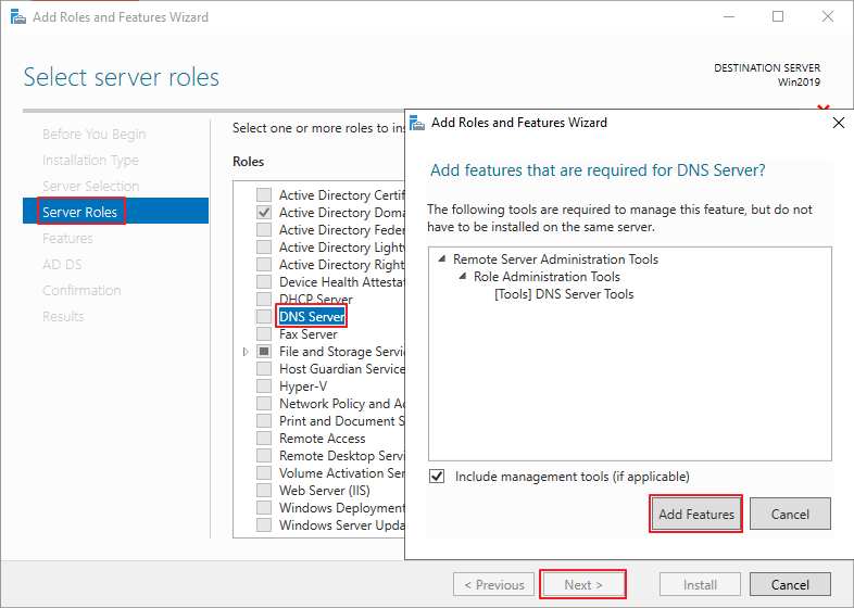 > DNS Server 선택 > Add Features