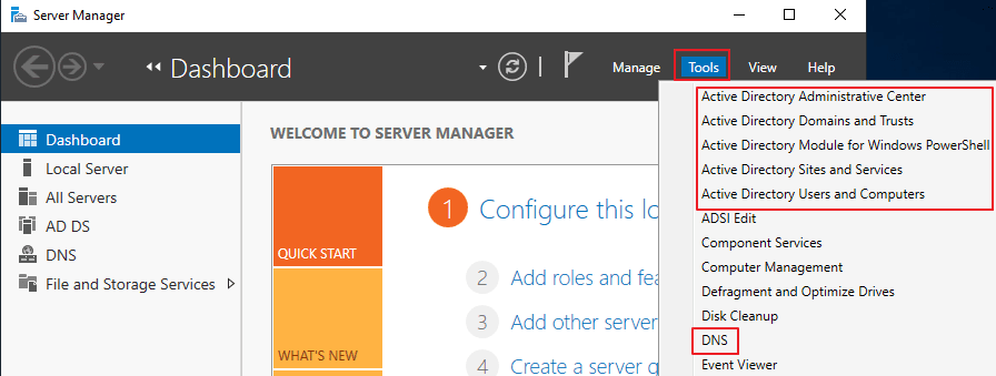 Server Manager > Tools에서