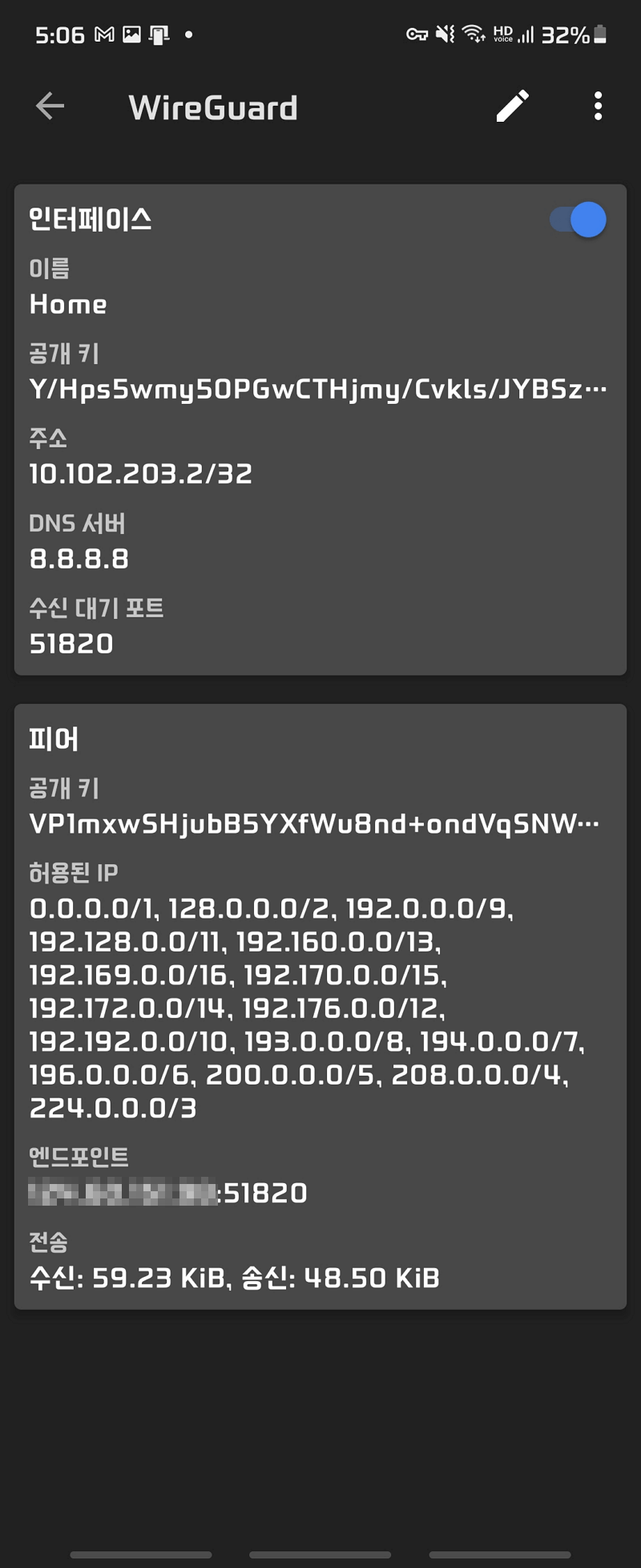 이제 WireGuard 서버에 생성된
