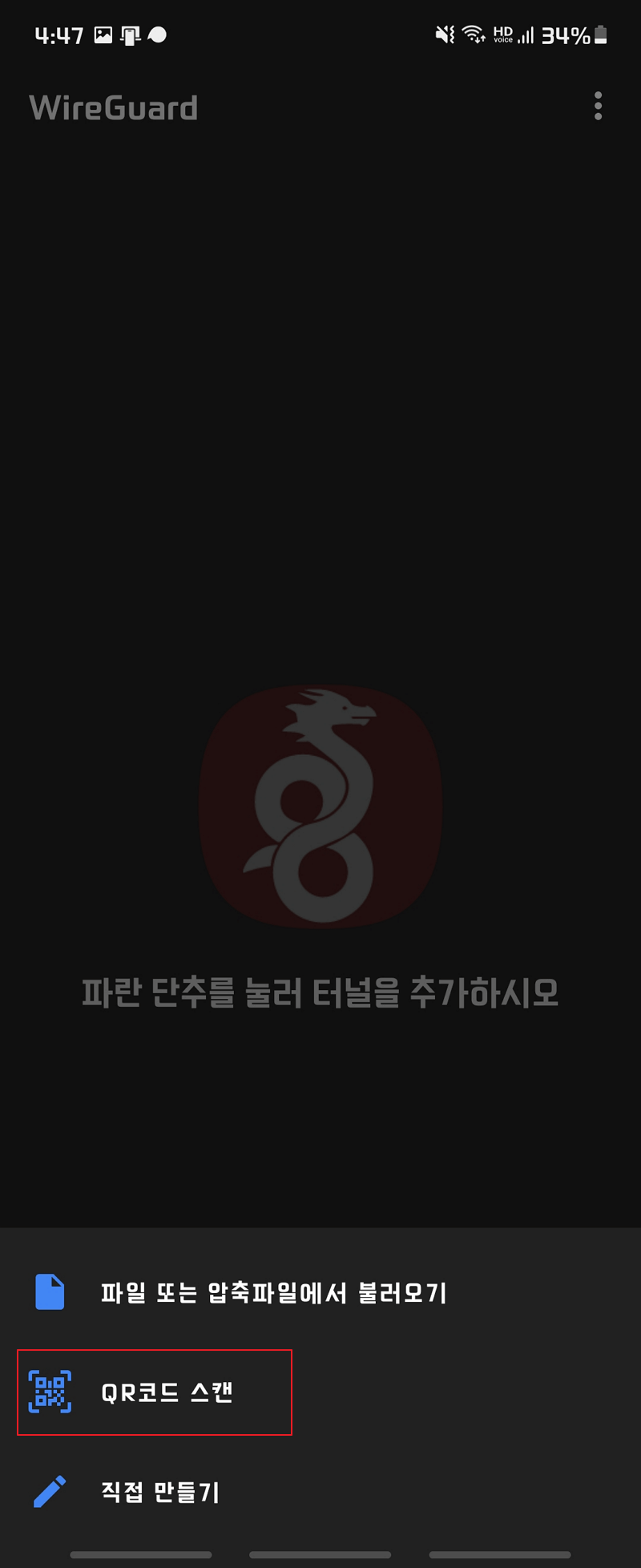 QRcode나 설정 파일(.conf)를