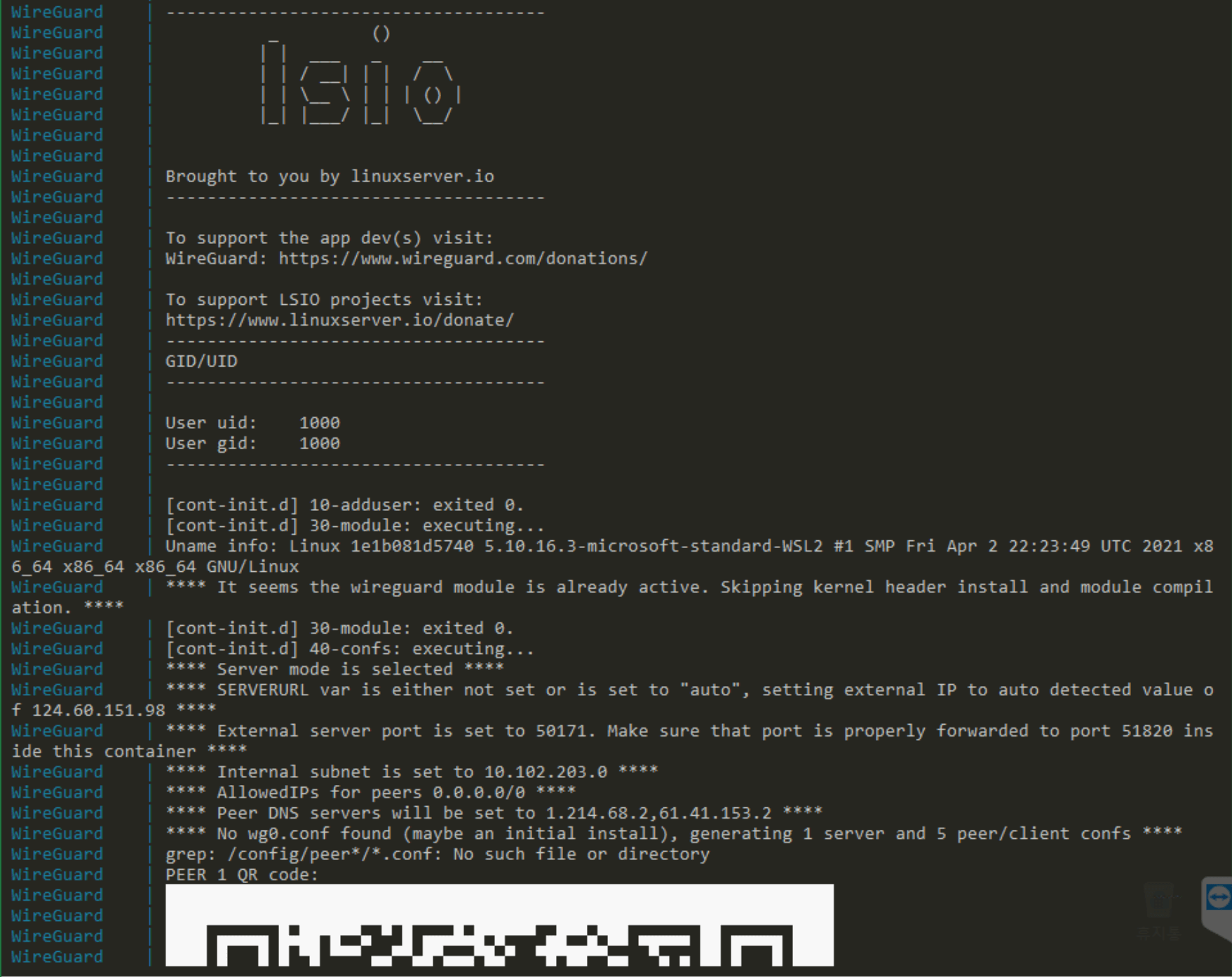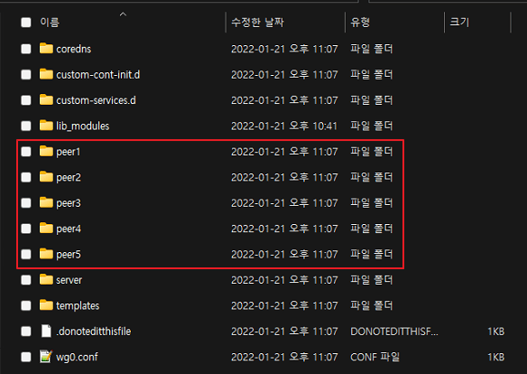 WireGuard 컨테이너에 생성된