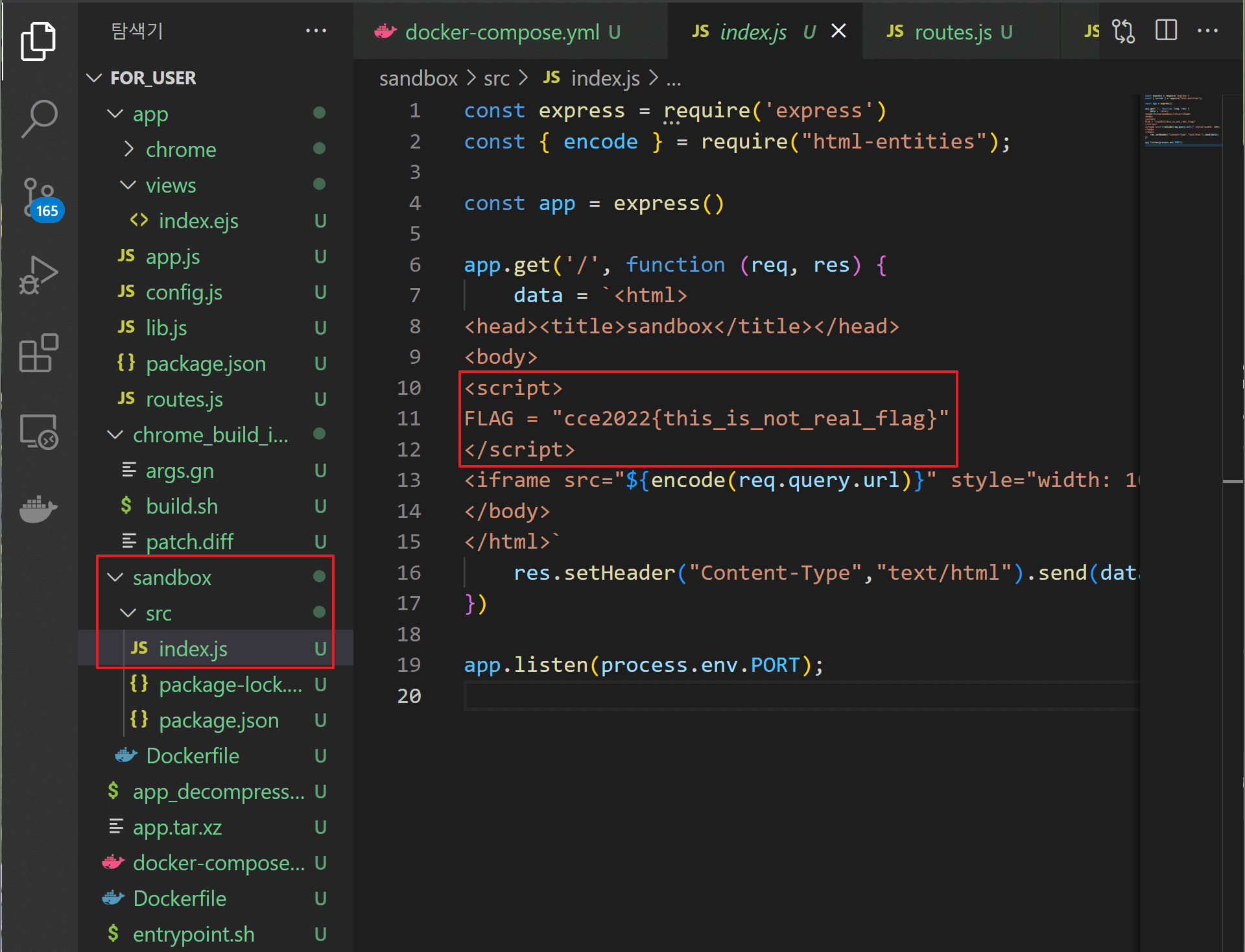 - internal 서버(sandbox 폴더)의 index.js 파일