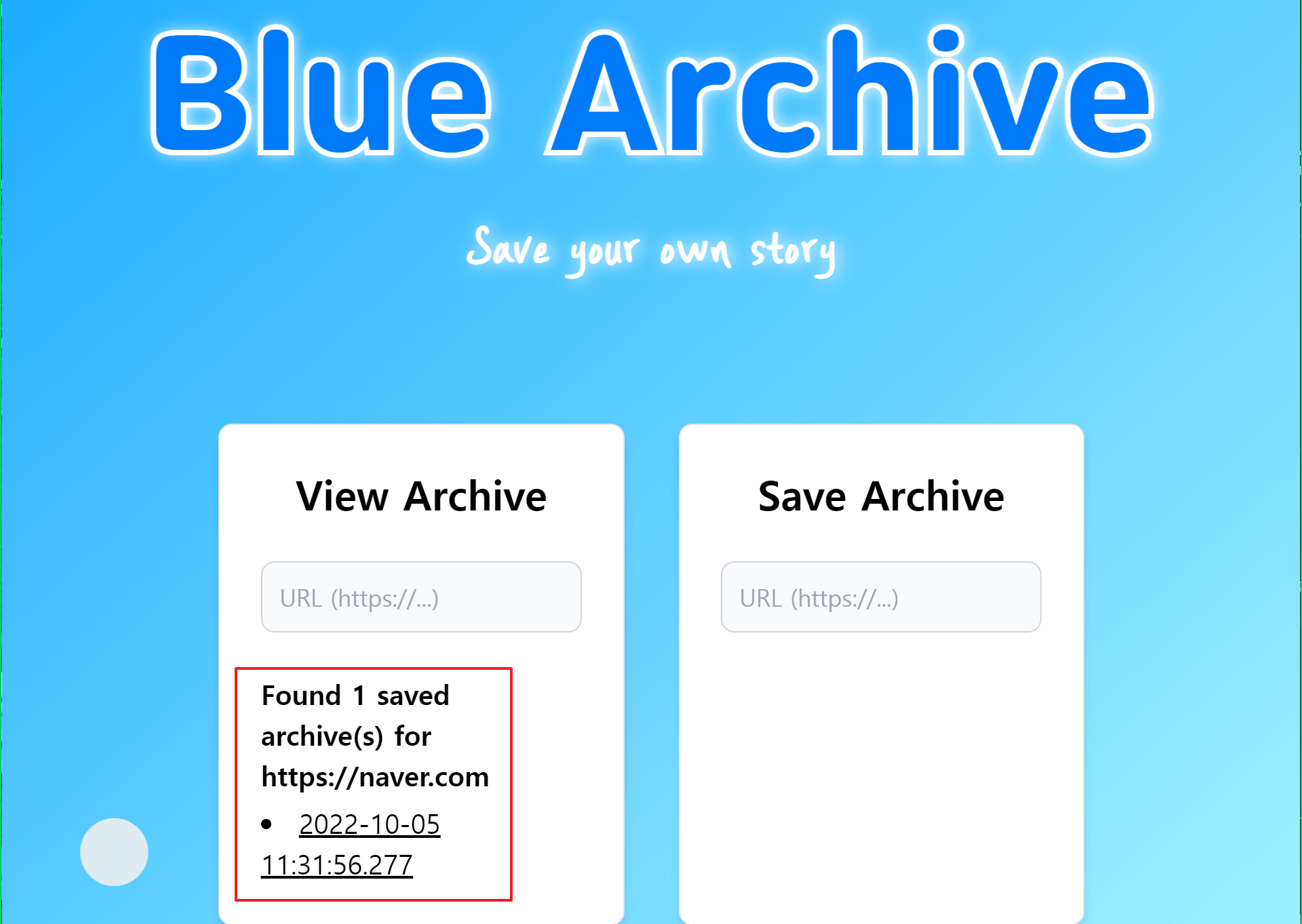- saveArchive 정상 종료 시: Successfully saved archive for ${url}