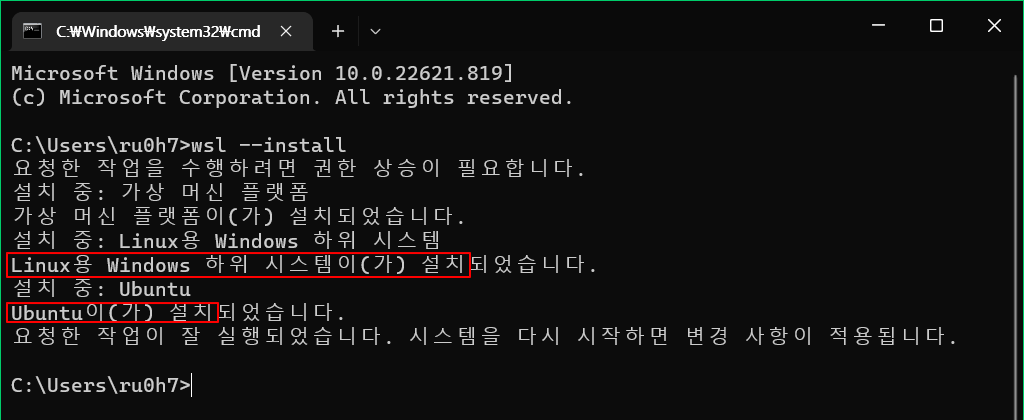 * Windows 10 version 2004(Build 19041) 보다 높은 버전 또는 Windows 11 사용