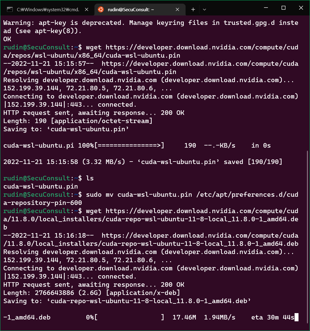 wget https://developer.download.nvidia.com/compute/cuda/11.8.0/local_installers/cuda-repo-wsl-ubuntu-11-8-local_11.8.0-1_amd64.deb