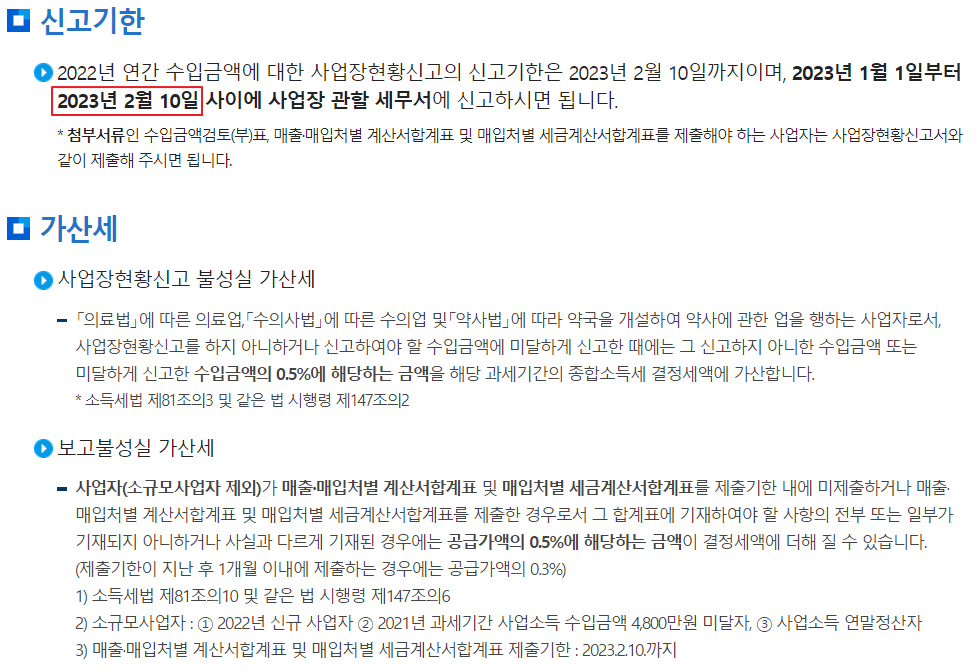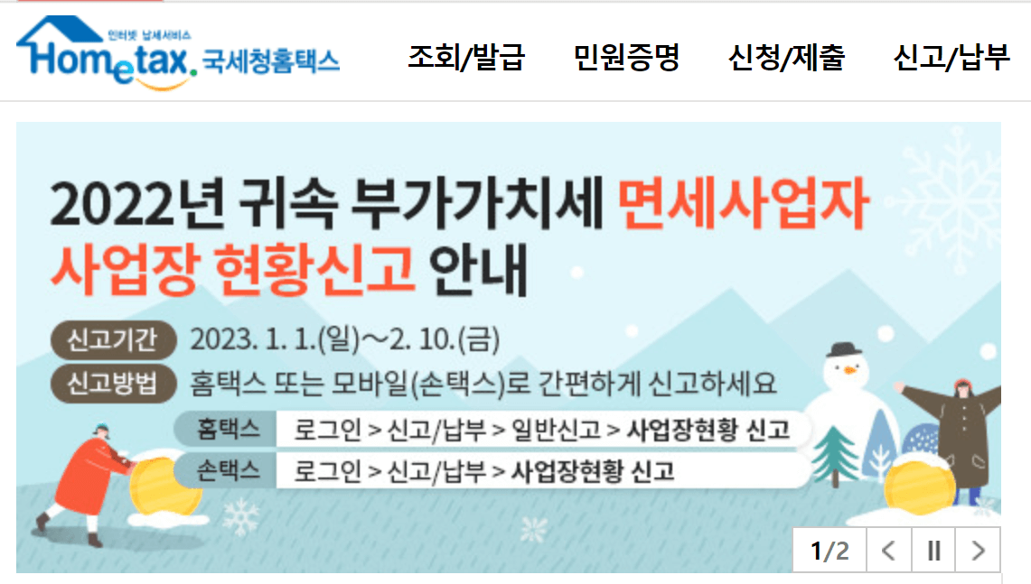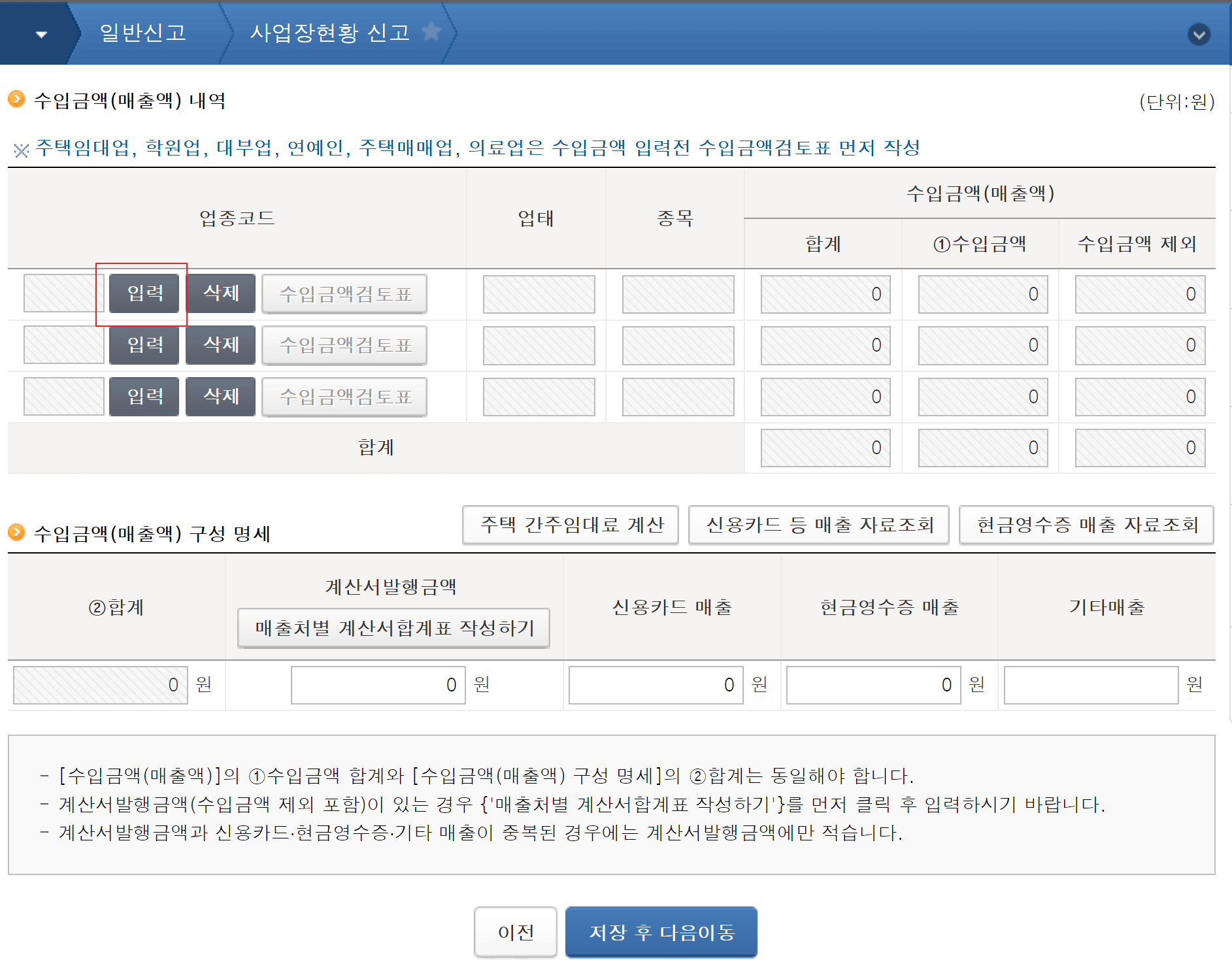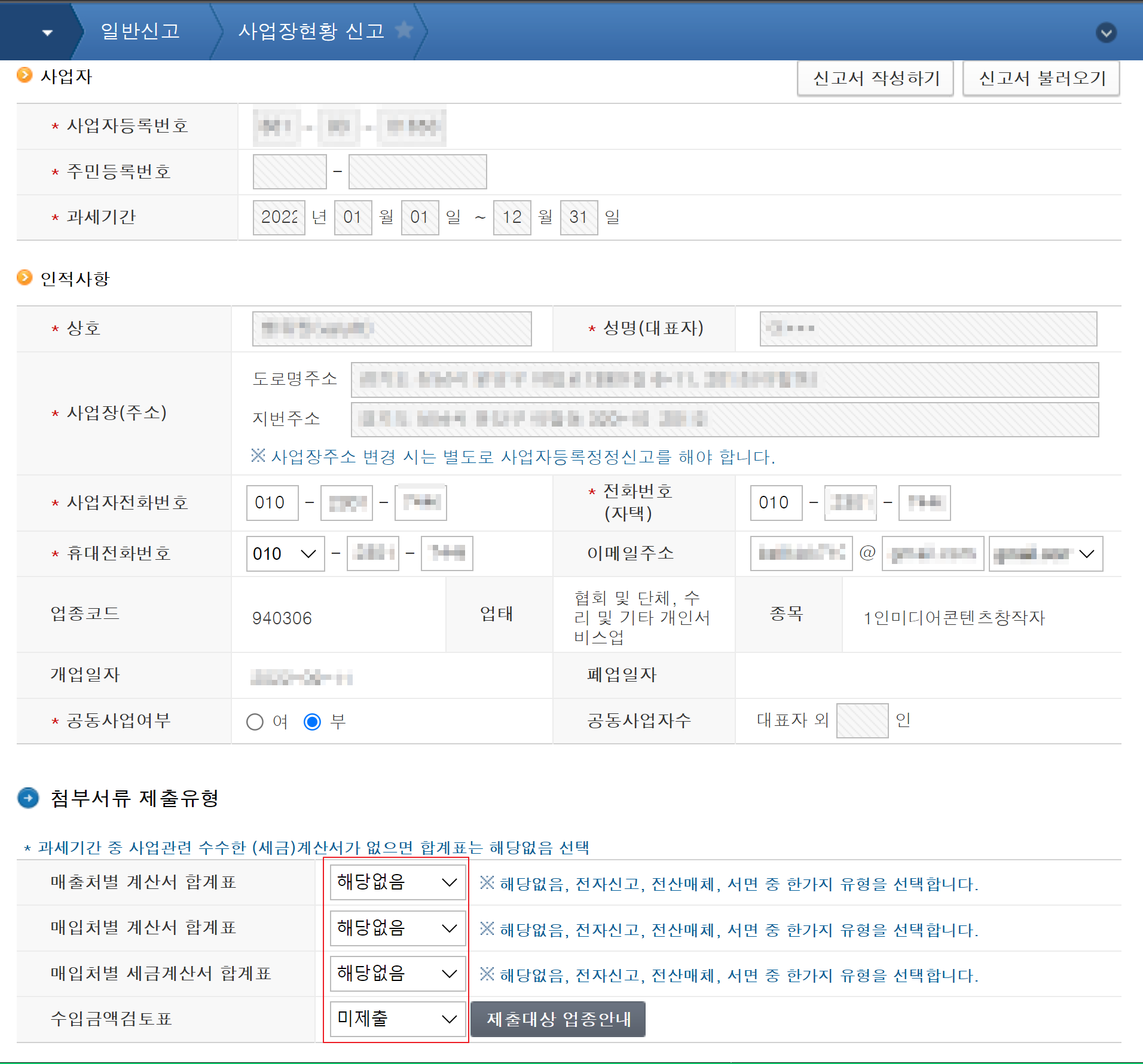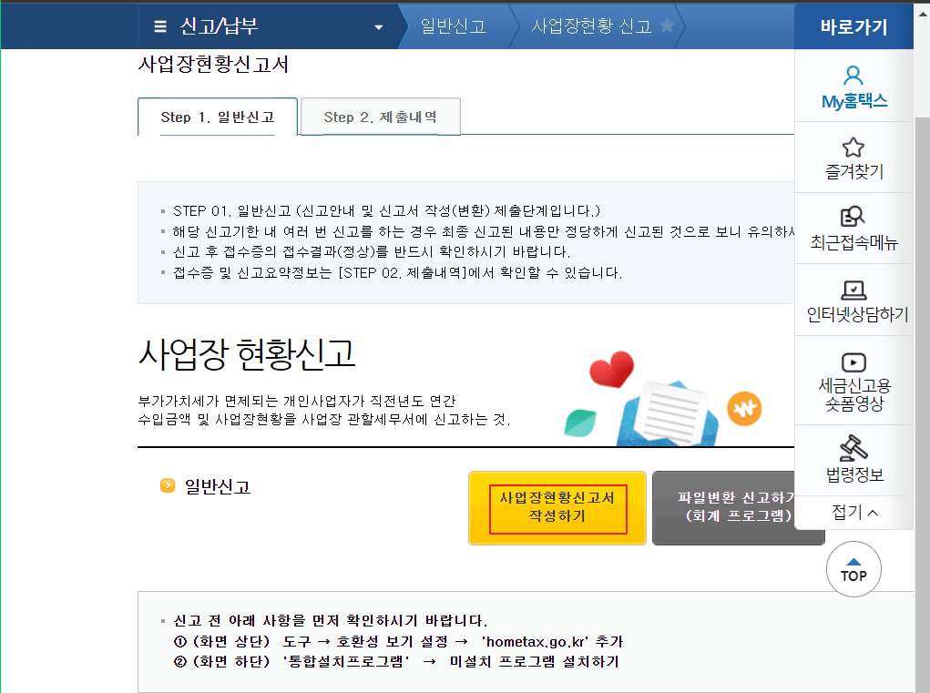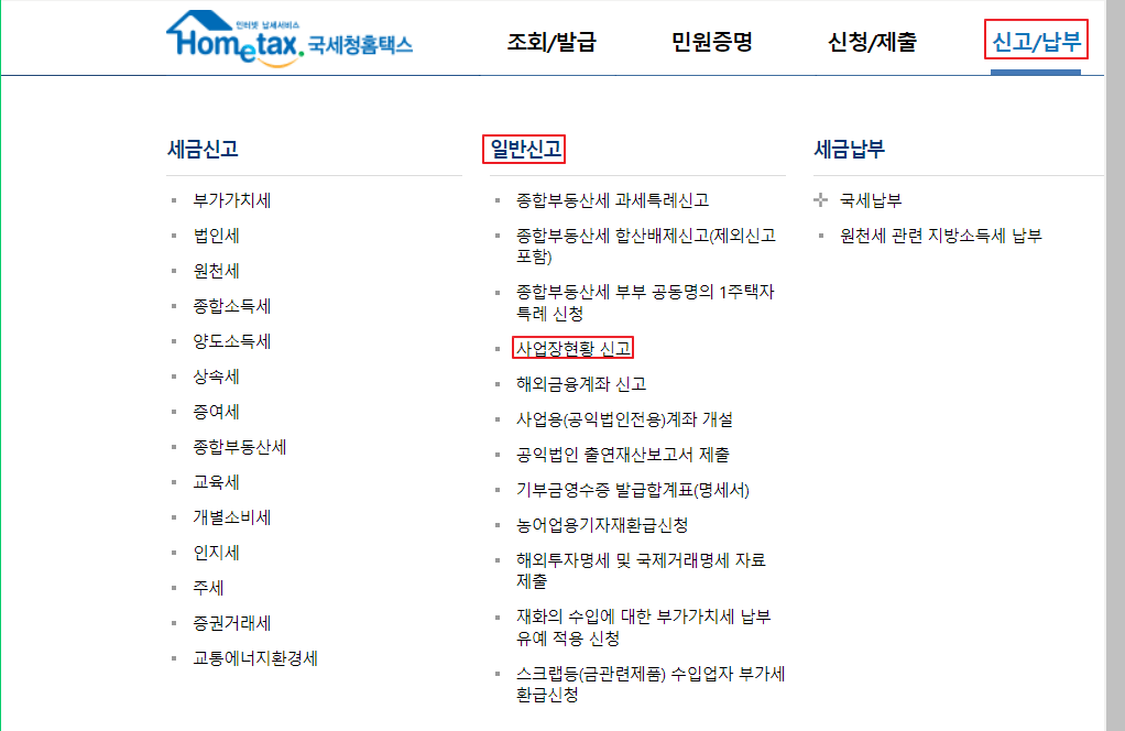 신고/납부 > 일반신고 > 사업장현황 신고 > 사업장현황신고서 작성하기
