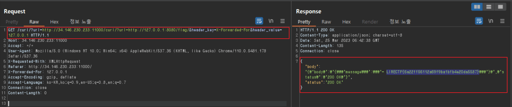 - curl 페이지를 사용하면 서버에서 /flag/ 페이지에 접속하게 되며,