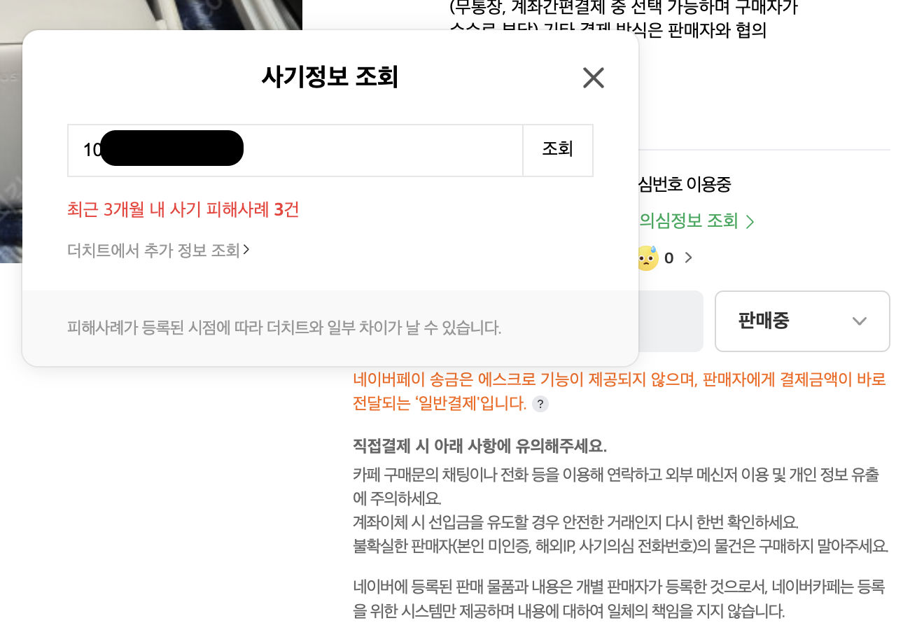 안전거래 여부 상관없이 계좌번호를 필수로 사기 조회 해볼 것.