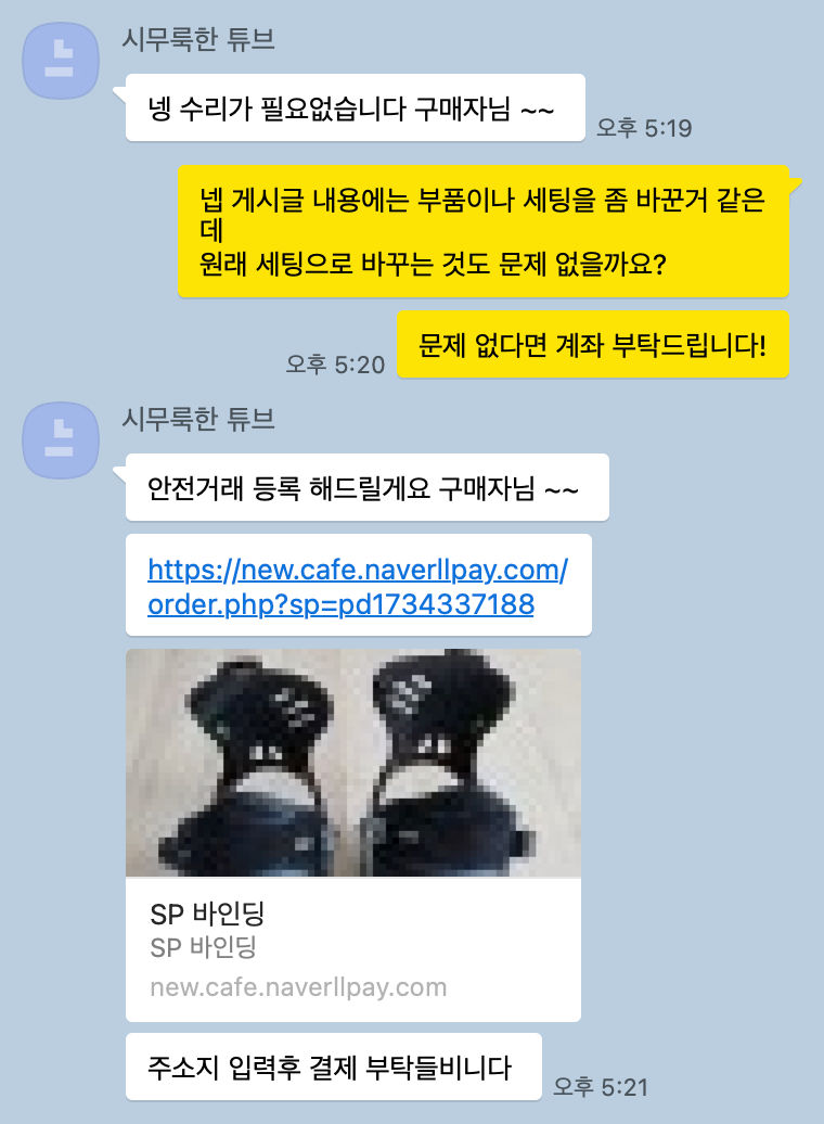 - 의심 point: 위와 같다. 문자와 네이버/중고거래앱 채팅이 있는데...?